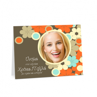 Κάρτα ευχών για τη μαμά, για την ονομαστική γιορτή της. Οριζόντια κόκκινη κάρτα για χρόνια πολλά.